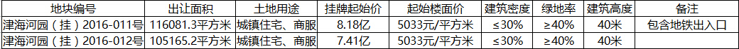 津海河园(挂)2016-011号宗地(以下简称同声路地块)位于天津津南区海河教育园区和慧南路与同声路交口东南侧,既此前挂牌同德路地块南侧,紧邻在建的天津地铁6号线南开大学站。据挂牌公告要求,同声路地块内部包含地铁出入口,属于地铁上盖项目。
